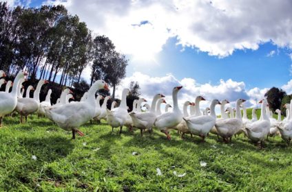 Wir führen unseren zwölf Hektar großen Betrieb im Nebenerwerb. Die Weidegänse bieten dabei die beste Möglichkeit, Nebenerwerb und Arbeit in Einklang zu bringen. Im Mai bekommen wir die Gössel (Gänse-Küken), die dann bis November liebevoll großgezogen werden. Die Gänse sind bereits ab der 8. Woche, wenn sie voll befiedert sind, untertags auf unseren großen, saftigen Weiden – das könnt ihr euch unten im Video ansehen. Zusätzlich zum Gras gibt es heruntergefallenes Obst sowie am Abend hofeigenes Getreide.