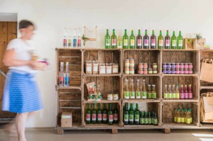 Neben Äpfeln und Birnen gibt’s im Hofladen auch Zwetschken, Kirschen, Marillen und Pfirsiche – ganz frisch vom Baum. Apfelsaft, Apfelmischsäfte, Schnapserl und weitere veredelte, selbstgemachte Produkte runden das Angebot ab.