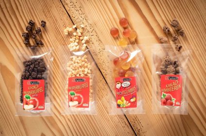 Schoko-Apfelchips 100 g in den Sorten Vollmilch & Zartbitter, Schokoknusperwürfel 50 g, Kakao-Himbeeren 35 g