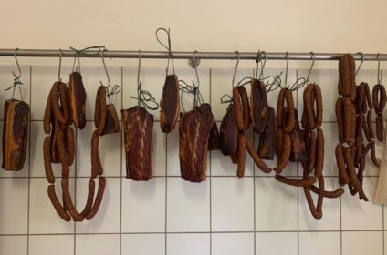 Blut - oder Leberwurst, Leberschädel roh, Leberschädel gebraten, Leberkäse roh, Leberkäse aufgeschnitten, Streichwurstbunkerl, Bratwürstel, Banater, Käsekrainer, Knacker, Weißwurst, Frankfurter, Käsewurst, Hauswurst, Cabanossi